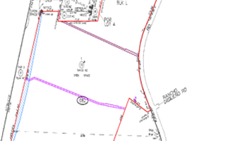 Maps plotted to show the boundaries of the Property being insured and the neighboring property, to analyze the Boundary Line Conflicts. Plotted using Deed Plotter Software.